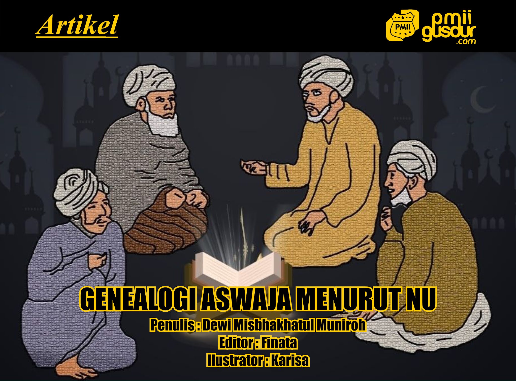 Genealogi Aswaja merupakan suatu cabang ilmu pengetahuan yang mempelajari tentang asal usul ahlussunnah wal jama'ah. Sebelum Rasulullah lahir masyarakat Arab suka bertindak semaunya sendiri tanpa aturan sehingga pada zaman itu disebut zaman jahiliyah atau zaman kebodohan. Pada tanggal 12 Rabiul Awal Nabi Muhammad SAW lahir untuk mengajarkan ajaran Islam dan menyempurnakan agama-agama sebelumnya. Ajaran Islam bersumber dari Al-Quran dan hadist-hadits nabi. Pada 12 Rabiul Awal tahun 11 H Rasulullah wafat. Setelah wafatnya Rasulullah penyebaran ajaran Islam dilanjutkan oleh para sahabat nabi yaitu Abu Bakar As Siddiq (11-13H), Umar bin Khattab (13-23H), Usman bin Affan (23-35H), Ali bin Abi Thalib (35-40H). Pada masa akhir sahabat yaitu masa Abu Hasan Asya'ari dan Abu Mansur Al Maturidi muncul berbagai aliran yaitu Syiah, Islamiah, Mu'tazilah, Qadariyah, Murji'ah, Khawarij. Setiap pengikut aliran tersebut menganggap dirinya sebagai Ahlussunnah Wal Jamaah yaitu sekelompok orang yang mengikuti sunnah nabi.